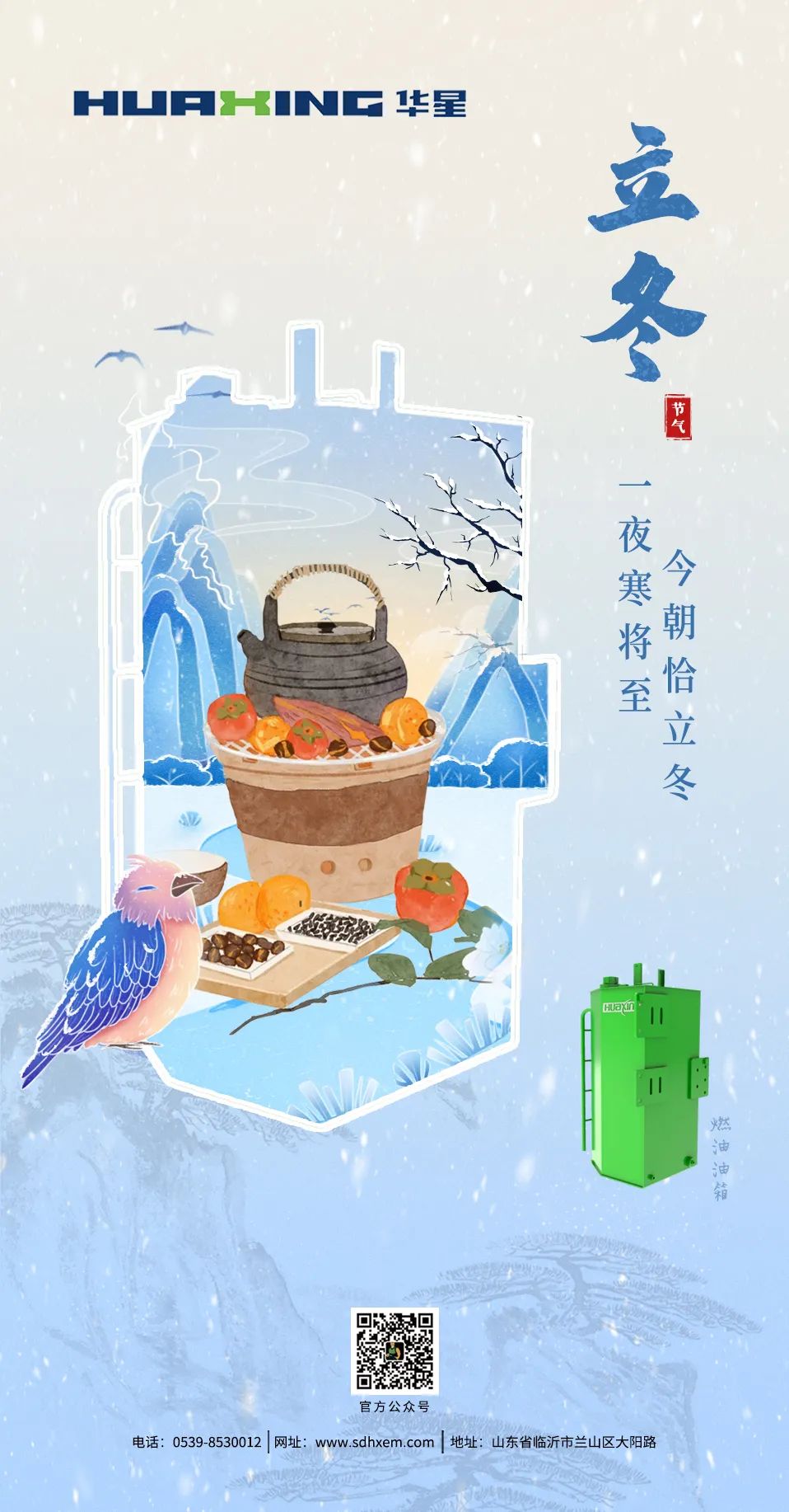 隨著第一縷冷空氣的悄然降臨,我們迎來了二十四節氣之一的立冬。立冬不僅代表著冬季的開始,也寓意著萬物收藏,為來年的生機做準備。在這個特別的時刻,山東華星重工機械裝備有限公司向所有支持和信任我們的朋友們致以最誠摯的問候與祝福。