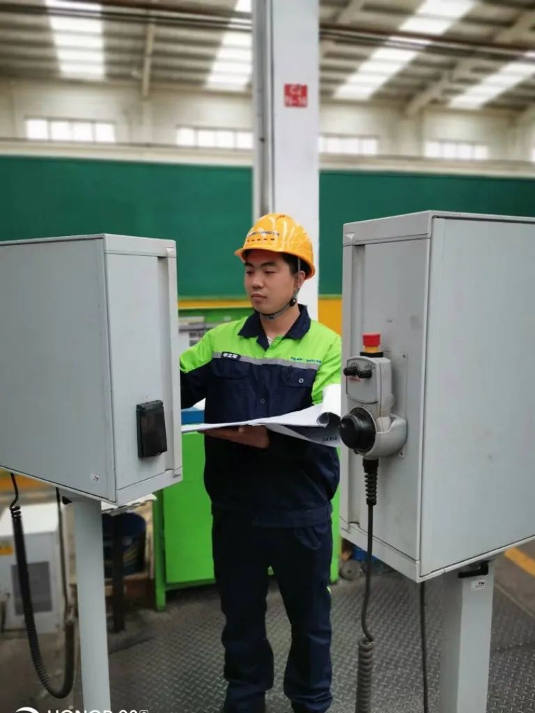 2021年夏天由于突降暴雨,屋頂水槽變形大雨漫出灌向機床,他迅速沖進雨里關閉機床電源,并與其他員工一起用篷布罩好機床,由于機床上部太高又在雨里不好蓋布,于是他一點一點爬上主軸箱在雨里一點點把篷布拉上機床蓋好,避免進一步損失,并組織其他員工保護好未受危害的機床。